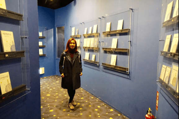 Tentu saja ada ruang Exhibition juga, di mana terdapat cerita sejarah Saint-Exupéry mulai dari kecil, seperti apa keluarga, jaman jadi pilot, memoribilia ruang kerja dan ruangannya waktu menulis Le Petit Prince. Exhibition ini juga membawa kami ke “dunia” Le Petit Prince itu sendiri. Saya sesak nafas di sini. Sungguh lah ini keren sekali! Selain exhibition room, terdapat juga cinema kecil untuk kami menonton film The Little Prince. Gya!